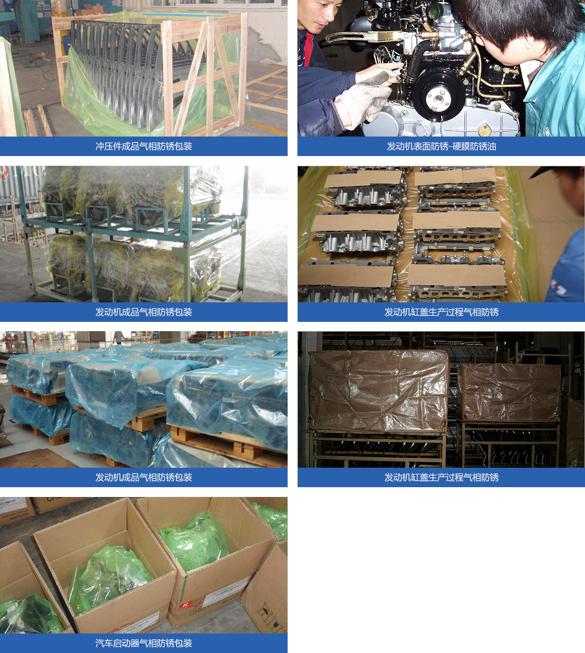 In the field of material is easy to rust and personalized demand is obvious, circulation of long distance, the characteristics of clean and high environmental protection requirements, and meet the specific safety requirements of rust proof to Europe and other countries, has a cylinder liner, piston rings, engine, engine block, crankshaft, supercharger and other auto parts products provide perfect solutions and anti rust product.