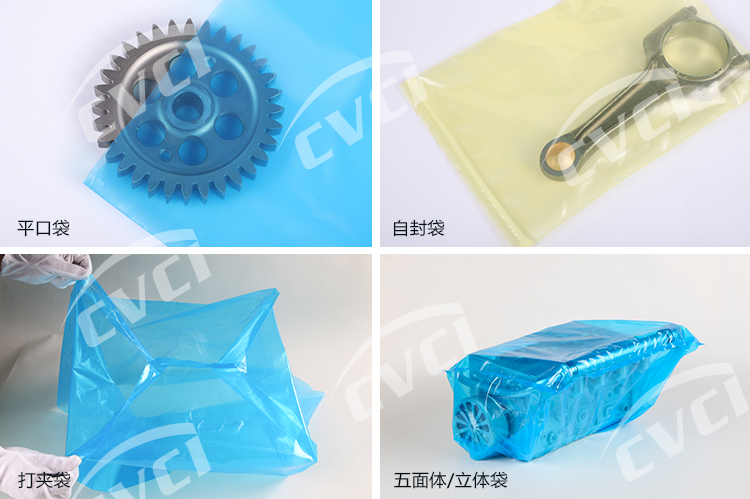 氣相防銹塑料薄膜以聚烯烴類樹脂為基材,加入揮發(fā)性緩蝕劑(VCI),經(jīng)過(guò)一些列工藝制成。氣相防銹膜在實(shí)際應(yīng)用中主要以袋狀或片狀形式呈現(xiàn)(詳見產(chǎn)品狀態(tài)),包裝保護(hù)客戶的產(chǎn)品,集防銹與包裝功能為一體。我們膜的厚度、顏色、尺寸及形式根據(jù)客戶實(shí)際需求進(jìn)行定制化、個(gè)性化生產(chǎn)。抗靜電氣相防銹膜具有良好抗靜電性,表面電阻率(108~1012)Ω。
